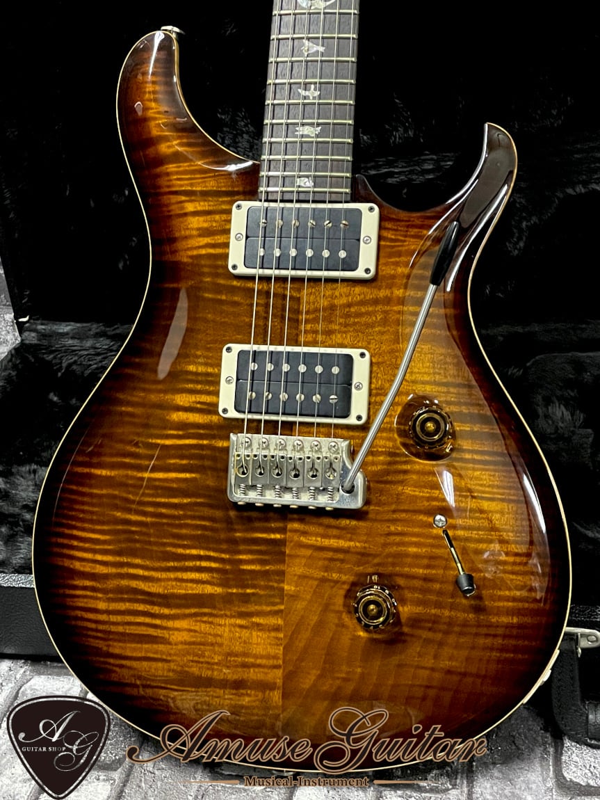 今回ご紹介させていただきますのはそのPRS社のフラッグシップモデルとしてリリースされているCustom 24です。クラシックな雰囲気を漂わせるBlack Gold Burstをフィニッシュした人気個体ですが、通常スペックではない”スペシャルオーダー”の特別な一本。加えて3キロ前半の軽量ウェイト&非常に綺麗な状態のオススメの一本です。