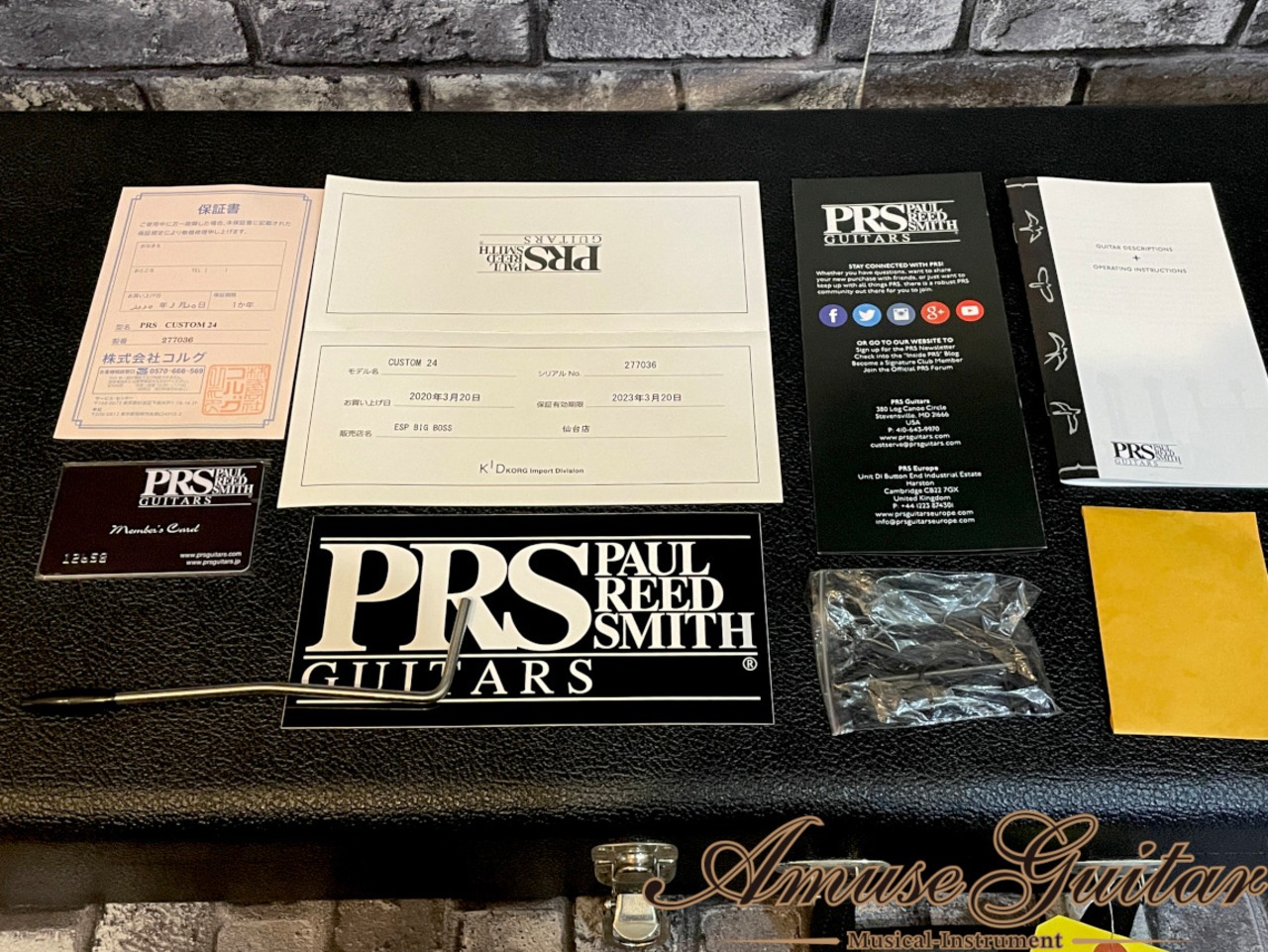気になる状態ですが、パーツの使用感と、若干のスレ、ヘッド先端のポツ傷はございますが、非常に綺麗な状態を保ったグッドコンディションです、ネック状態も良好で、トラスロッドの余裕しっかりと確認済み、フレットも約9割残りとまだまだ使えます。付属品につきましては、KORG発行の保証書、冊子類(画像参照)、アーム、オリジナルブラックトーレックスハードケースとなります。