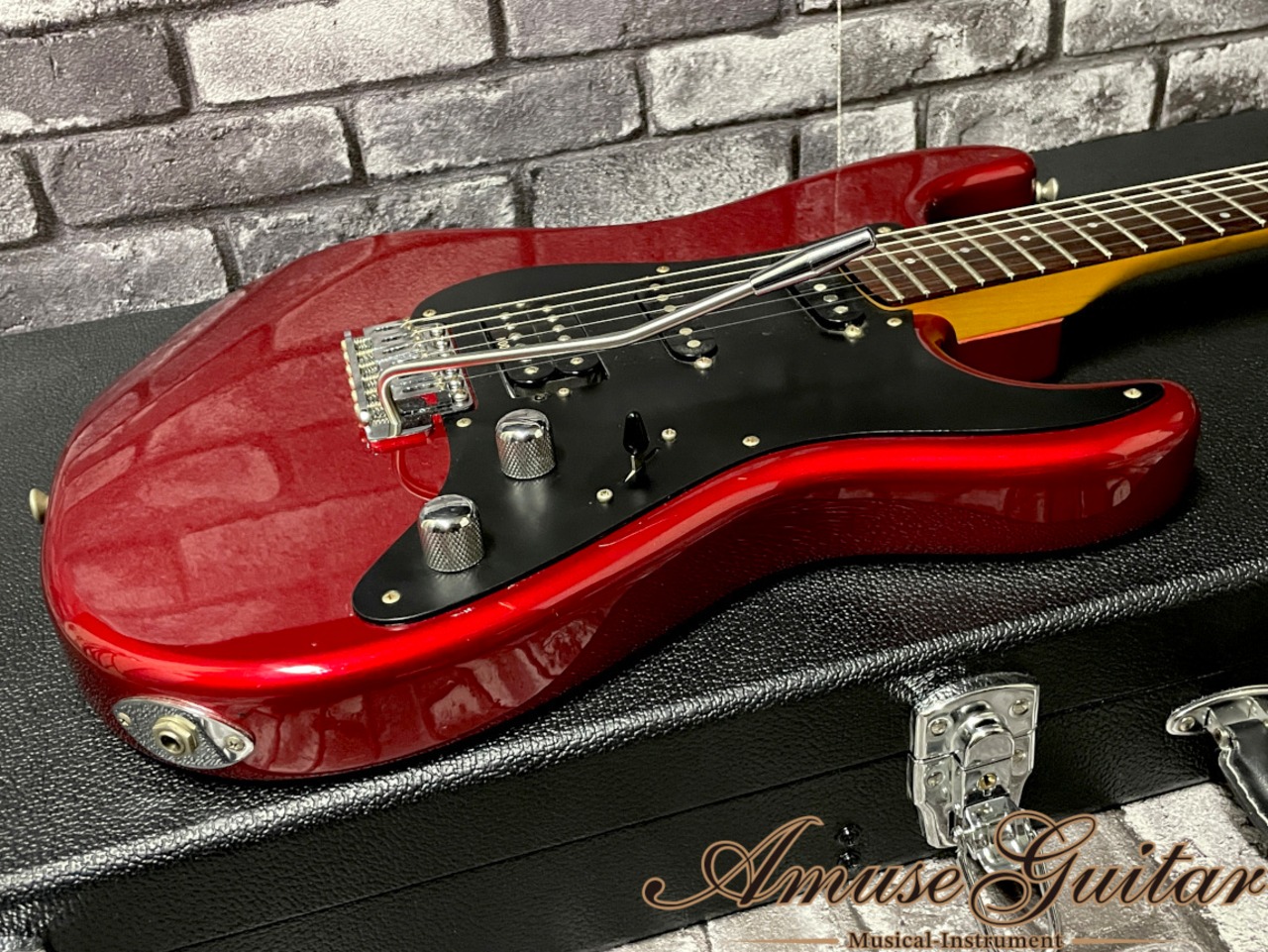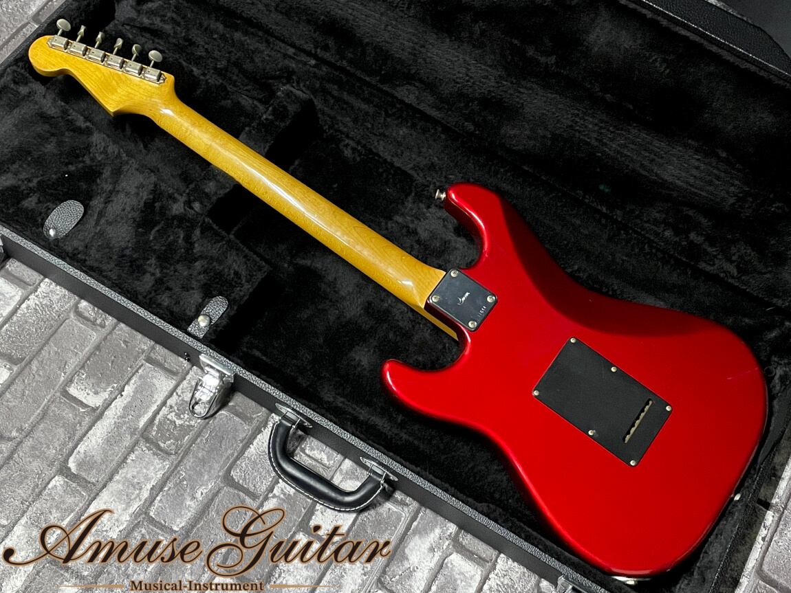 気になる状態は、ヘッド/ネック/ボディに打痕、スレ、ピックガードのリアPU部にエクストラホール等の使用感が見受けられますが、ボディ部には木部が大きく露出した部分は無く、年式を考慮するとかなり綺麗な印象です。ネック状態は良好となり、フレットは約7~8割残り、トラスロッドの余裕もしっかりと確認済みです。付属品はアーム、ソフトケースです。※ハードケースは撮影用のものです。