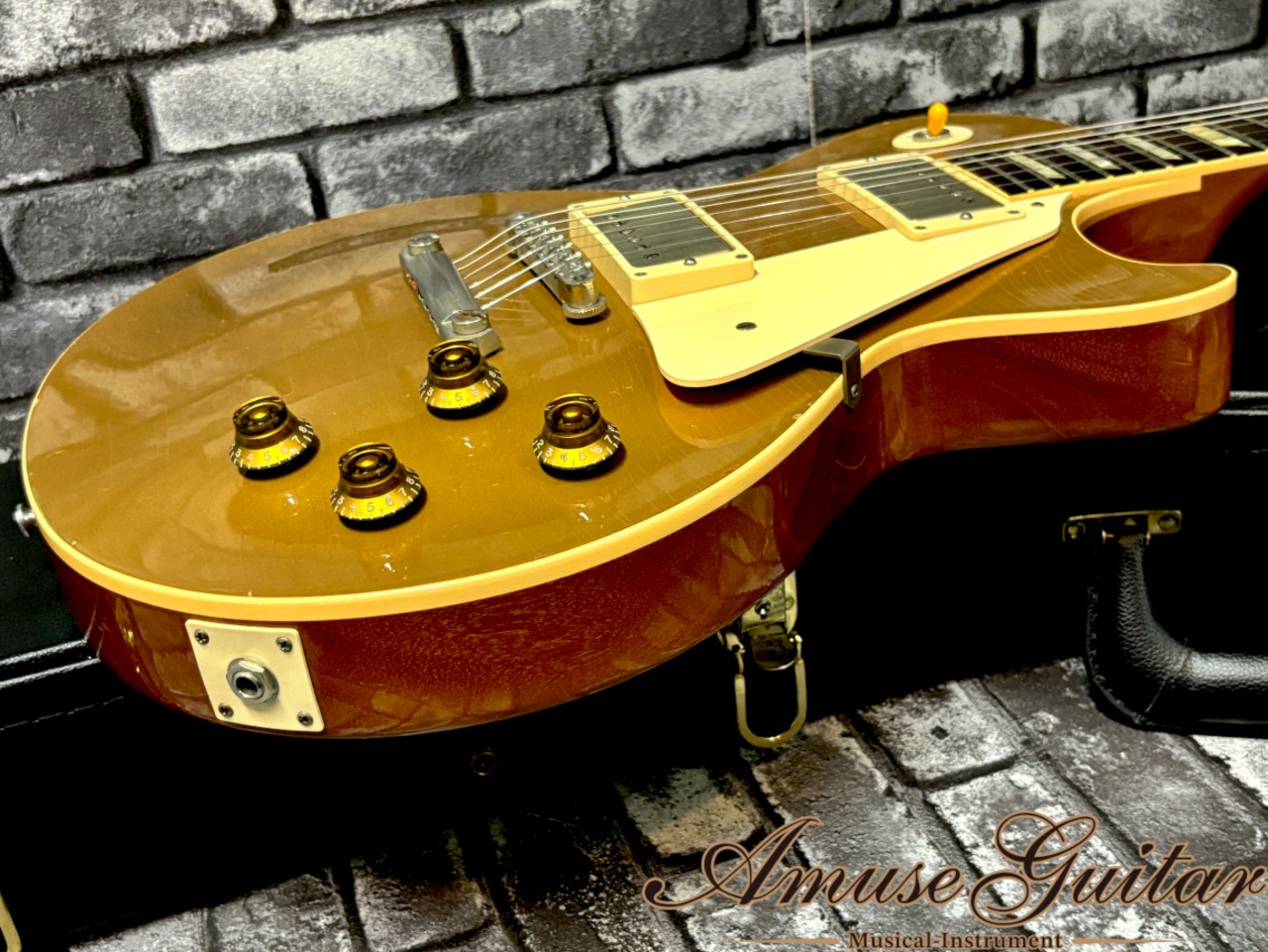 Gibson社のフラッグシップモデルであり、もはやエレキギターの代名詞とも言える”Les Paul”モデル。どんなモデルよりも最も有名かつ多くのアーティスト・ミュージシャンに愛用されてきました。その中でも近年特段人気の上昇が目に付く”GT”ことGold Topフィニッシュ。美しいアーチトップを際立たせる高級感は数々のプレイヤーの心を鷲掴みし、特段52~58年のオリジナル製造のものは高騰を極めております。