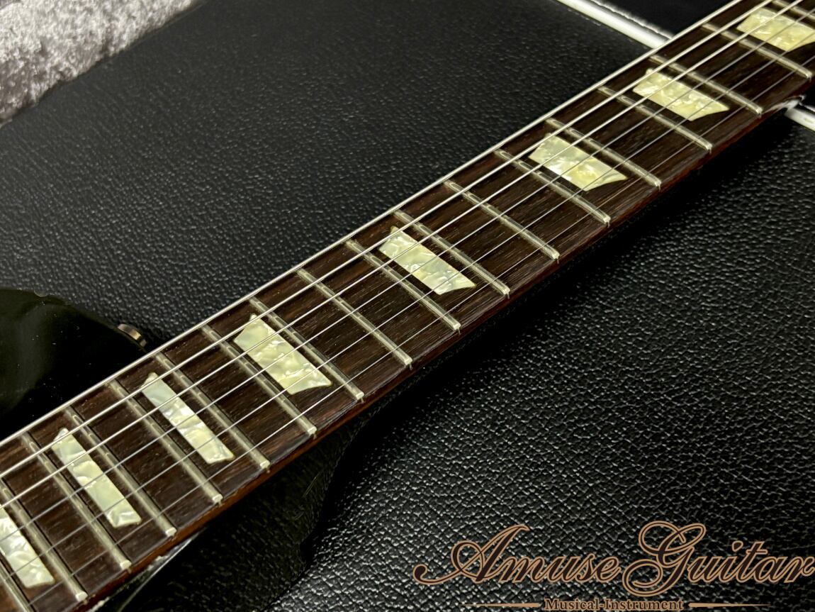 サウンドの要となりますピックアップは、ギブソン社496R(フロント)と496T(リア)にマウント。カバードスタイルになっており、サウンドキャラクターとしてはパワフルネスでモダンな印象にて、図太いローミッドと切れ味鋭いエッジ感、哭くように伸びやかなサスティーンが心地よい仕上がりです。クラシックなロックにも、ダウンチューニングでヘヴィなアプローチをするにも相性良くマッチしてくれます。