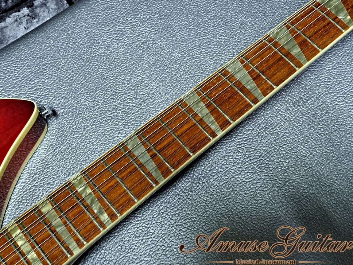 今回ご紹介させていただきますのは、そのビートルズでJohn Lennon、そして特にGeorge Harrisonが使用していた事でも知られる“世界一有名な12弦ギター”とも呼ばれる360/12 C63 Firegloです。A Hard Day's Nightの印象的なイントロを始め、各所にこのギターでしか奏でられないコーラスをかけたような広がりのあるサウンドは多くのリスナー、プレイヤーを魅了し、愛され12弦サウンドの基準と言っても過言では無い、ルックスを含め美しきロックアイコンとしてPete Townshend、Thom Yorke等のプレイヤーの使用でも知られています。