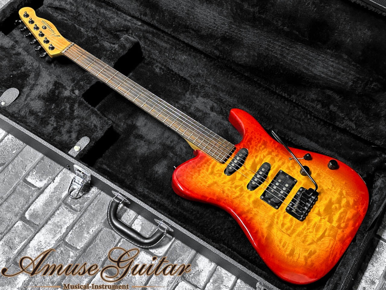 今回ご紹介させていただきますのは、そのトム・アンダーソンのPGM組み込みシリーズの一本。STタイプ、TEタイプ等、様々なマテリアル等の仕様違いにてラインナップが存在しましたが、こちらはTEタイプの最上位グレードモデル。中古市場にてメイプルトップ&バスウッドバックボディ(DTE-245)の個体は度々お見掛けしますが、こちらの2Pフィギュアドフルメイプルボディの個体は極めて少ない生産数となっており、過去の取引歴も見受けられない程珍しい逸品となっております。