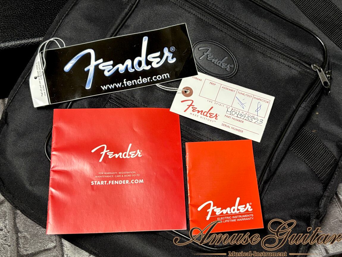 こちらの状態ですが、工場出荷時よりハードなレリック加工が施されている為判断は難しくなりますが、製造から24年経過している事を考慮すると良好な状態と思われます。ノブの一部欠け木部に弱化の痩せが確認できますが、演奏面や強度的には問題ございません。ネック状態は良好で、トラスロッドの余裕はしっかりと確認済み。フレット残りは恐らくすり合わせ済みで約5~6割となります。付属品は各種冊子類(画像参照)とFender GIG Caseです。※ハードケースは撮影用のものです。