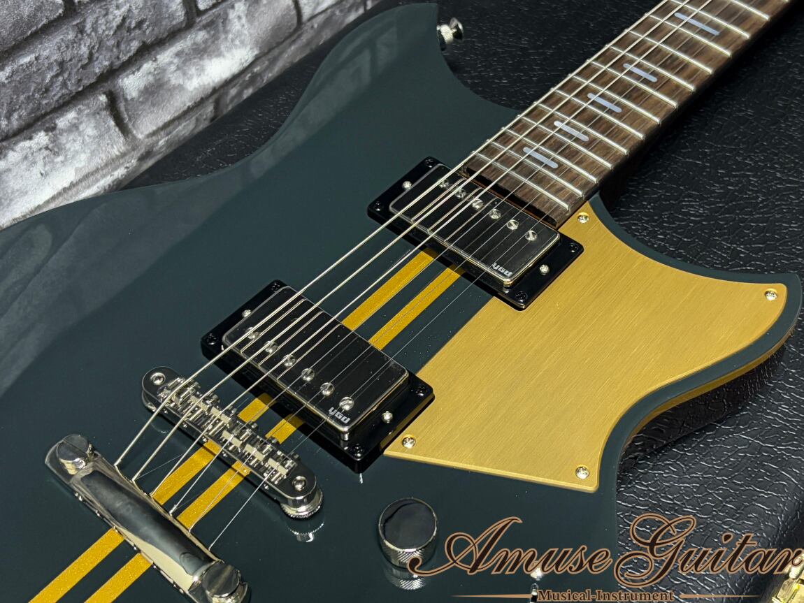 サウンドの根幹となるピックアップにはリア・フロント共にアルニコVマグネットを使用したYAMAHAオリジナル【VH5】ハムバッカーを搭載。エッジに艶感を持たせながら、アタックに敏感で音ヌケも抜群のキレのあるサウンドデザインです。シンプルなコントロールの中には、様々なサウンドバリエーションを選択する機能が盛り込まれております。ピックアップセレクターは5wayとなり、ハムバッカーサウンドは勿論、通常の3シングルコイルギターのハーフトーンのようなサウンドについても音量差をほとんど感じさせずに出力が可能。更に大きな特徴としましては、マスタートーンツマミに搭載されたPush⇔Pull POTによって起動可能なヤマハオリジナル機能の【フォーカススイッチ】。こちらは電池を用いないパッシブコントロールながら、ピックアップの巻き数を増やしたような”押し出し感”のあるサウンドをプラスする事の出来る仕様です。リズムプレイの中で印象的でシャープなヌケも、リードプレイでの反応も良く細くならない音像もバッチリで、様々なジャンルで存在感を醸し出す事間違いなしの実力です。そしてプロフェッショナルモデルのみ採用の特別仕様として【I.R.A. 処理】も加えられております。こちらは所謂「新品のギターは音が”起きて”いない」という問題を根本から解決。YAMAHA独自の技術により、新品出荷時より優れた鳴りを実現。こちらの個体も例に漏れず、しっかりとした木材鳴りを感じられます。